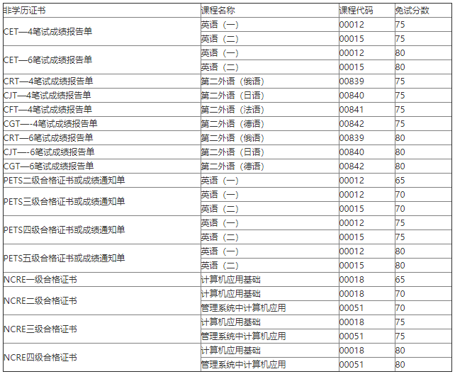 非學歷證書免試自學考試相關(guān)課程一覽表