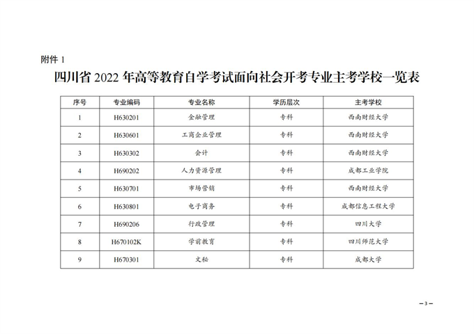 關(guān)于確定2022年四川省自考面向社會開考專業(yè)主考學(xué)校的通告