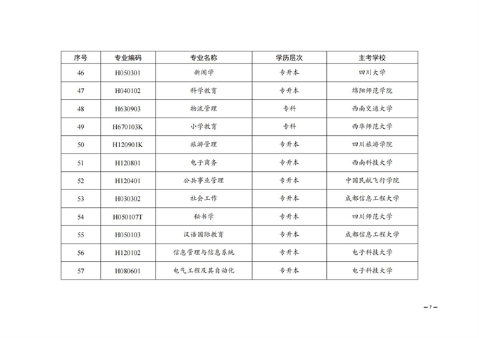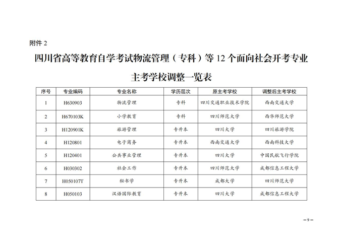 2.四川省高等教育自學(xué)考試物流管理(專科)等12個面向社會開考專業(yè)主考學(xué)校調(diào)整一覽表