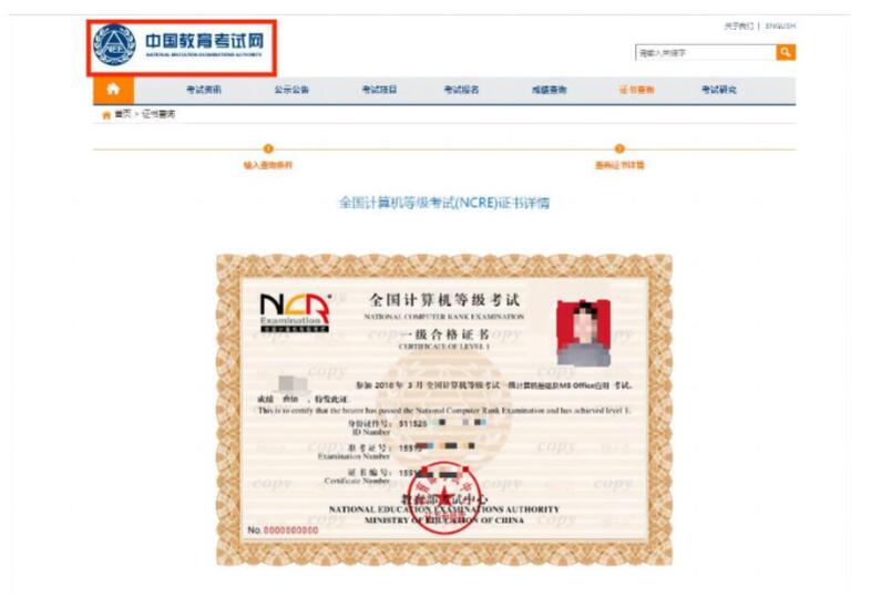 3.非學歷證書免試中,《合格證書》或《筆試成績報告單》在中國教育考試網(wǎng)上的查驗證明截圖需清晰、完整。“中國教育考試網(wǎng)”字樣不能缺失。