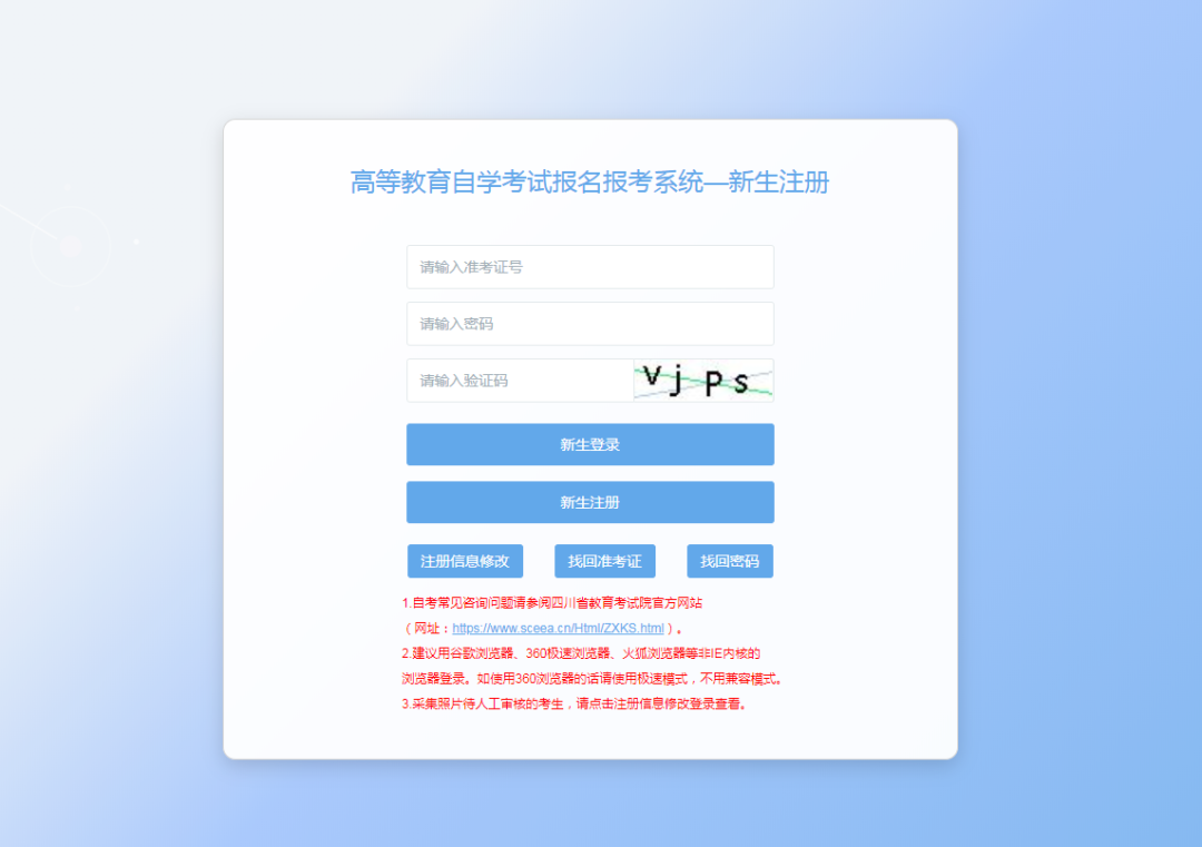 四川省自考新生注冊(cè)及課程報(bào)考系統(tǒng)操作指南