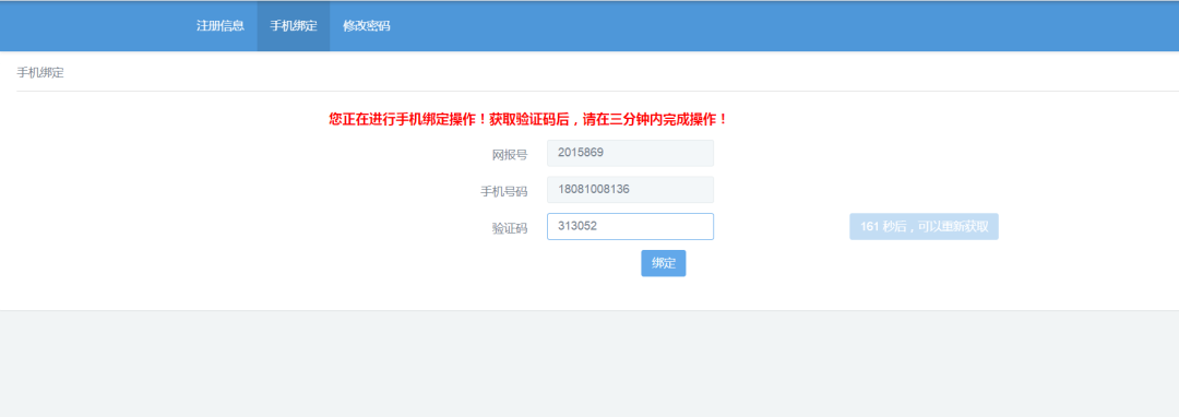 4.點(diǎn)擊“綁定”按鈕,完成手機(jī)綁定。