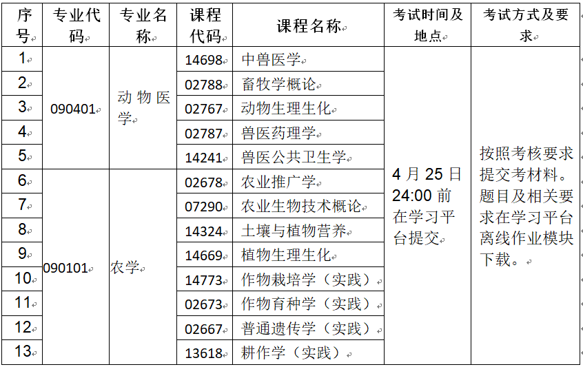 考試課程以“離線考試”形式進(jìn)行考核??忌卿泴W(xué)習(xí)考試平臺,按照要求和格式完成考核,并按時提交。課程名后帶實踐的課程以實踐報告形式上報完成;純實踐的課程以作業(yè)加考核的形式在線完成。