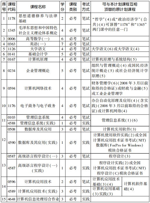 2022年4月天津自考專科計(jì)算機(jī)信息管理專業(yè)計(jì)劃(停考過渡)