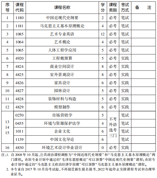 2022年4月天津自考本科環(huán)境藝術(shù)設(shè)計(jì)專業(yè)計(jì)劃(停考過渡)
