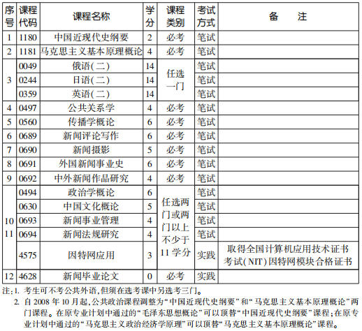 2022年4月天津自考本科新聞學專業(yè)計劃