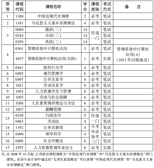 - 2022年10月天津自考本科人力資源管理專業(yè)計劃