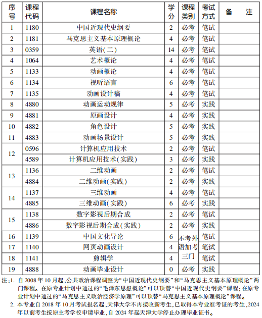 - 2022年10月天津自考本科動(dòng)畫(huà)專(zhuān)業(yè)計(jì)劃