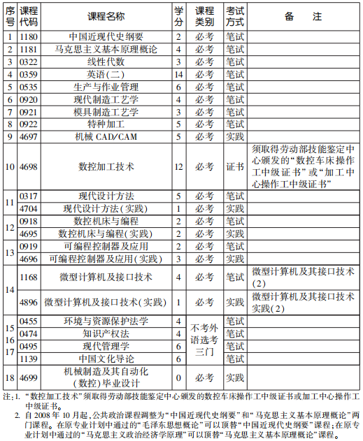 2022年4月天津自考本科機械制造及自動化專業(yè)計劃
