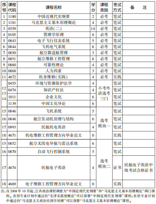 2022年4月天津自考本科航空維修工程管理專業(yè)計(jì)劃