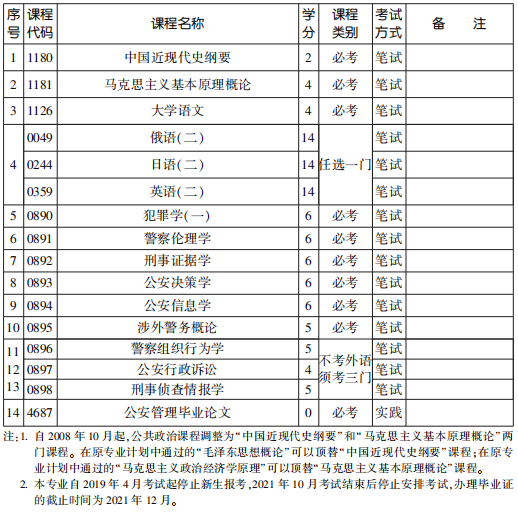 2022年4月天津自考本科公安管理專業(yè)計(jì)劃(停考過(guò)渡)