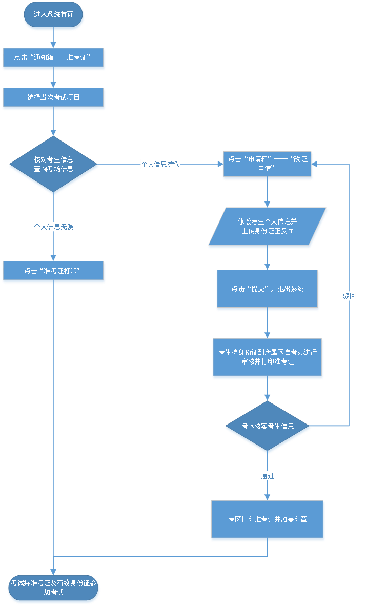 打印方法:自2019年10月份天津自學考試開始,考生須登錄“天津招考資訊網(wǎng)”網(wǎng)站自行打印《天津市高等教育自學考試準考證》。2022年4月天津自考準考證打印及個人信息修改申請流程圖如下: