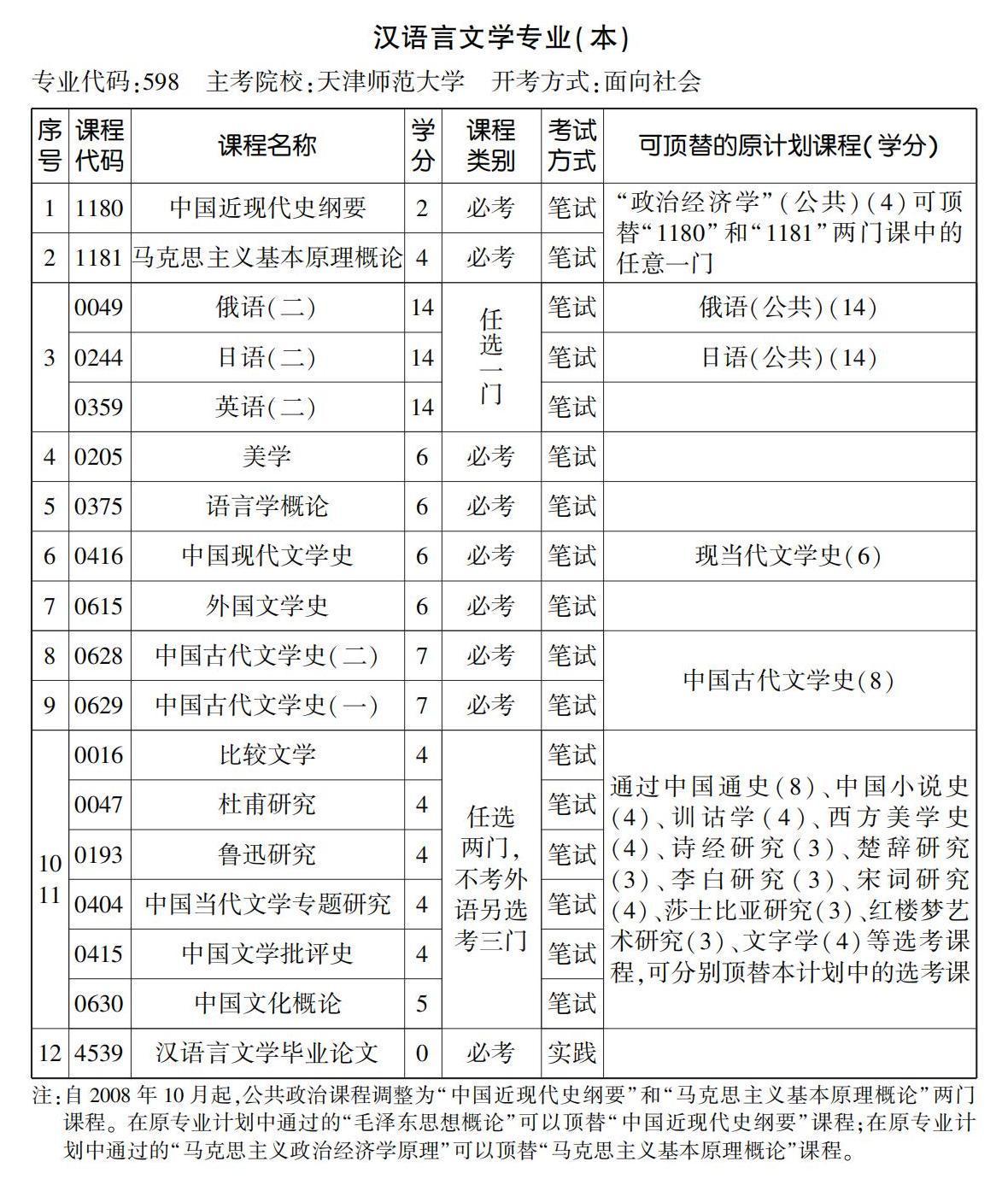 - 2022年10月天津自考本科漢語言文學(xué)專業(yè)計劃