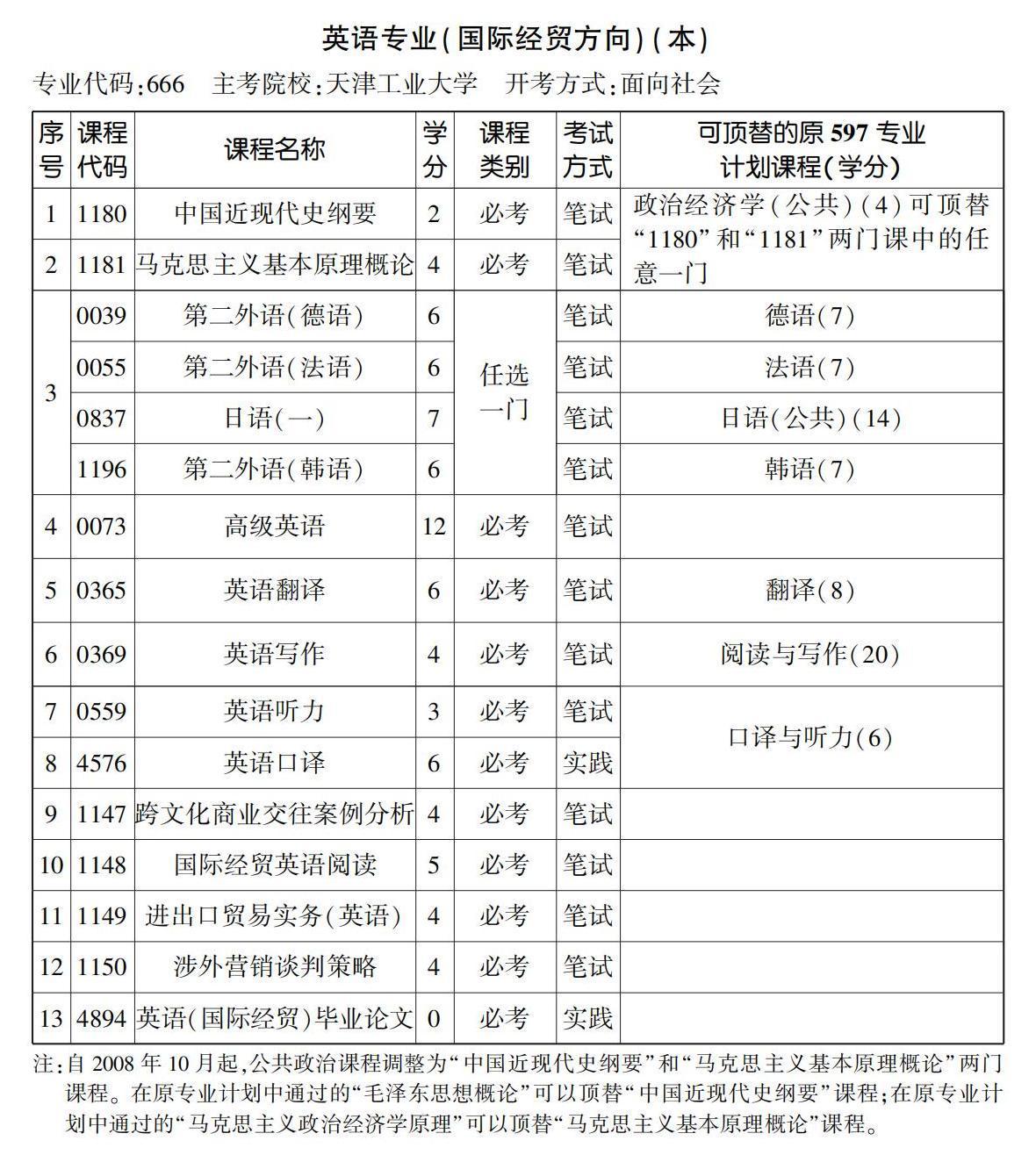 2022年10月天津自考本科英語(國際經(jīng)貿(mào)方向)專業(yè)計劃