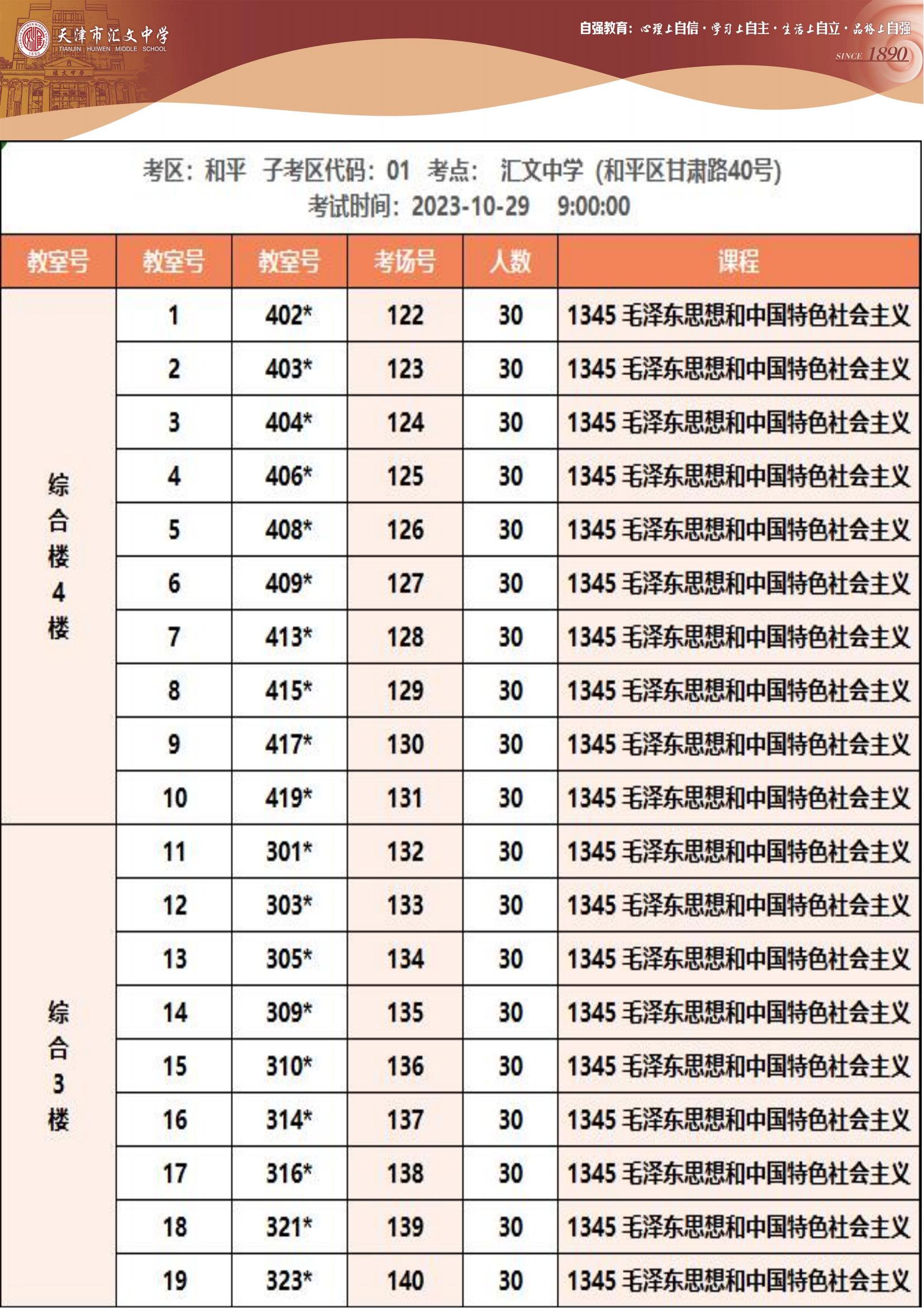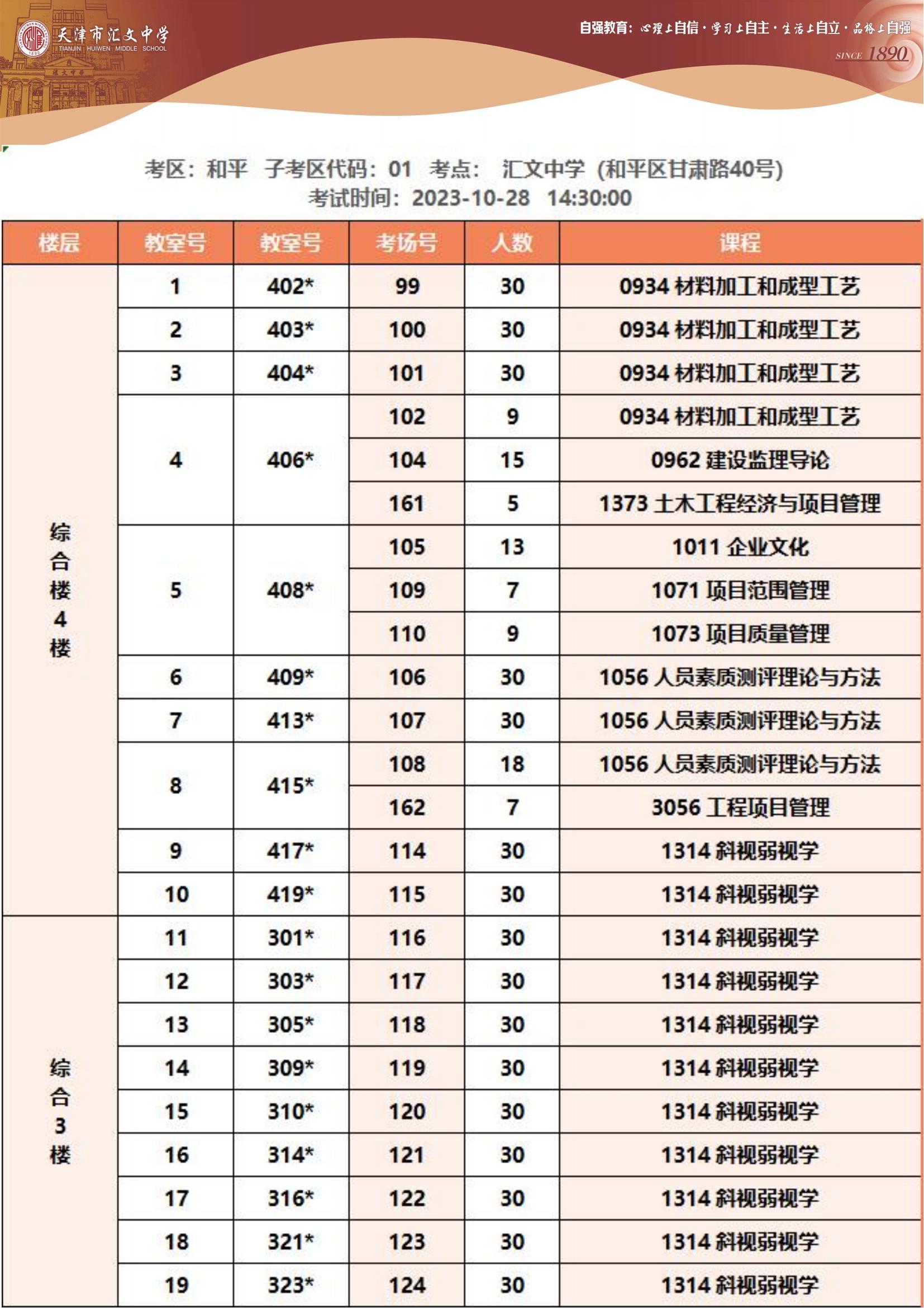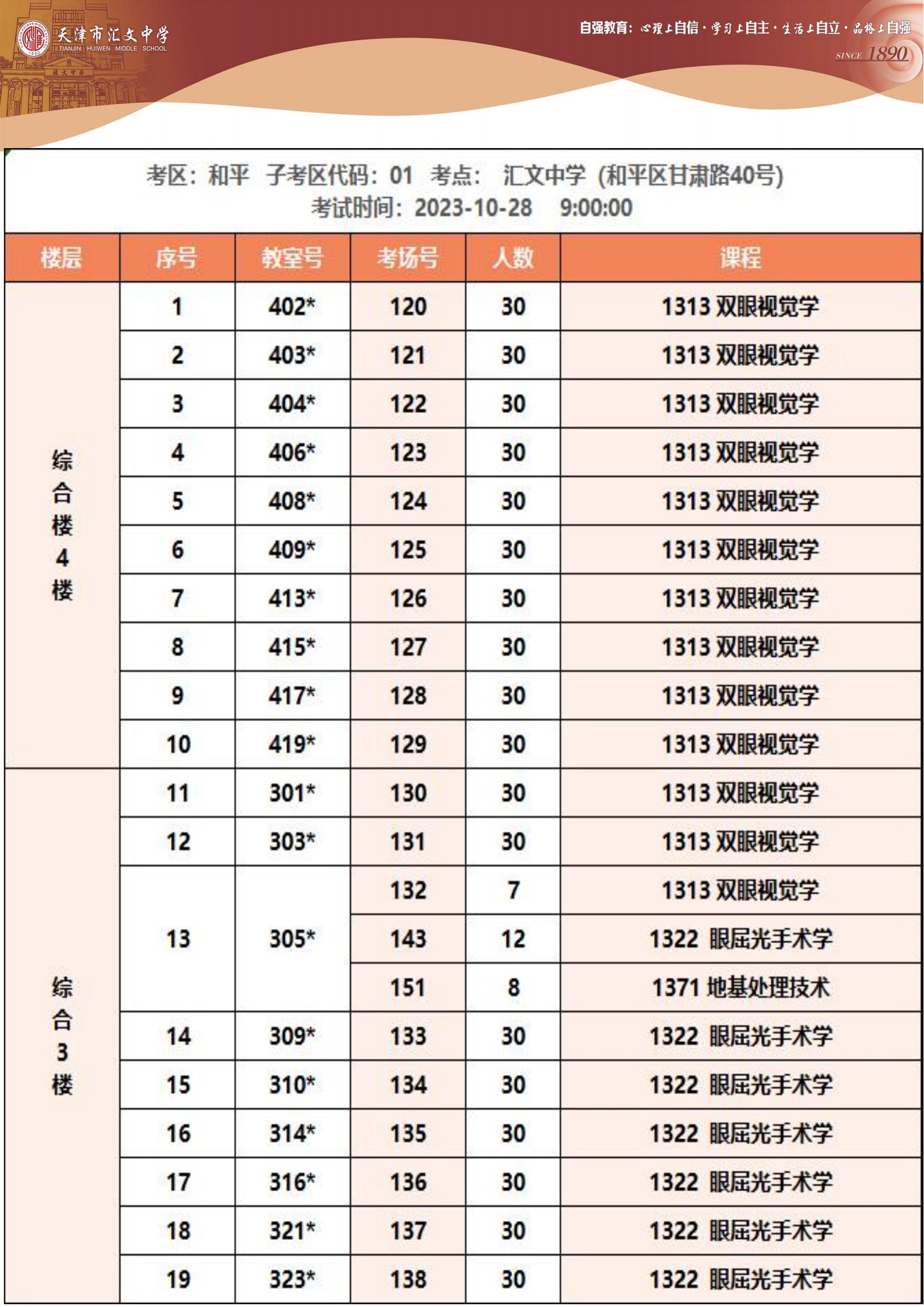 2023年下半年天津市和平區(qū)匯文中學(xué)自考考點(diǎn)考場示意圖