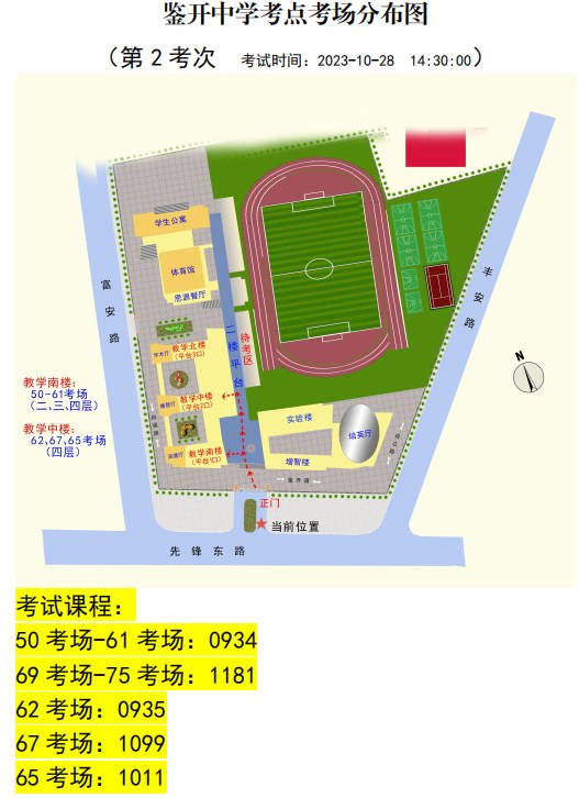 2023年下半年天津市東麗區(qū)鑒開中學(xué)自考考點(diǎn)考場示意圖
