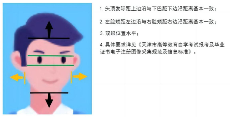 3. 身份驗(yàn)證上傳的證件照作為考生存檔照片,將用于準(zhǔn)考證打印及其他各項(xiàng)業(yè)務(wù)辦理,須符合《天津市高等教育自學(xué)考試報(bào)考及畢業(yè)證書(shū)電子注冊(cè)圖像采集規(guī)范及信息標(biāo)準(zhǔn)》(附件1),不符合要求的照片將不能通過(guò)認(rèn)證。