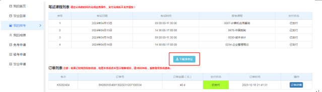 點(diǎn)擊【下載準(zhǔn)考證】;