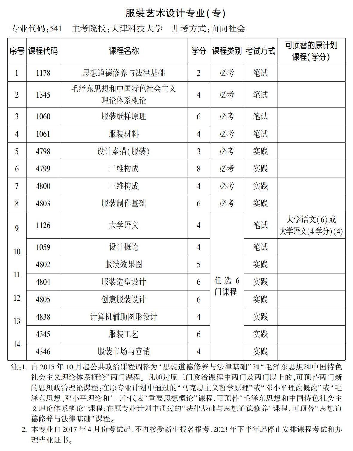 2023年4月天津自考專科服裝藝術(shù)設計專業(yè)計劃(??歼^渡)