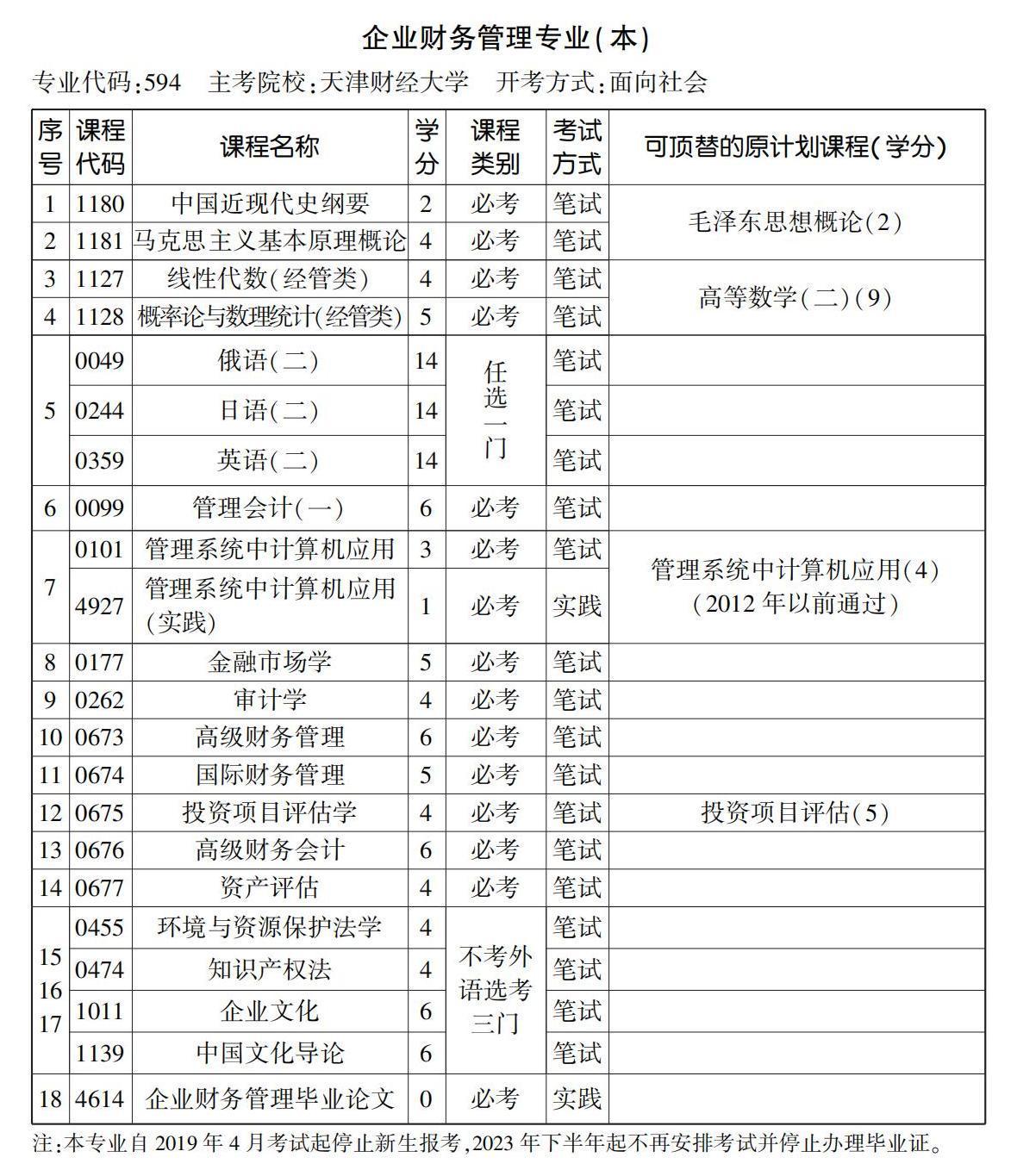 2023年4月天津自考本科企業(yè)財務管理專業(yè)計劃(??歼^渡)