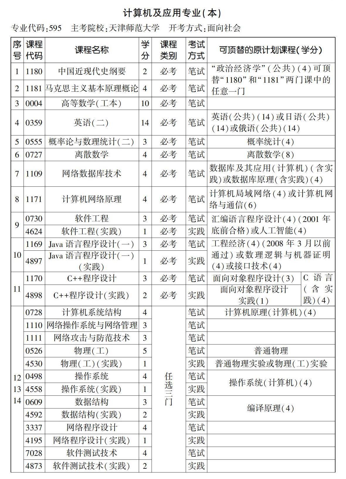 2023年4月天津自考本科計(jì)算機(jī)及應(yīng)用專業(yè)計(jì)劃