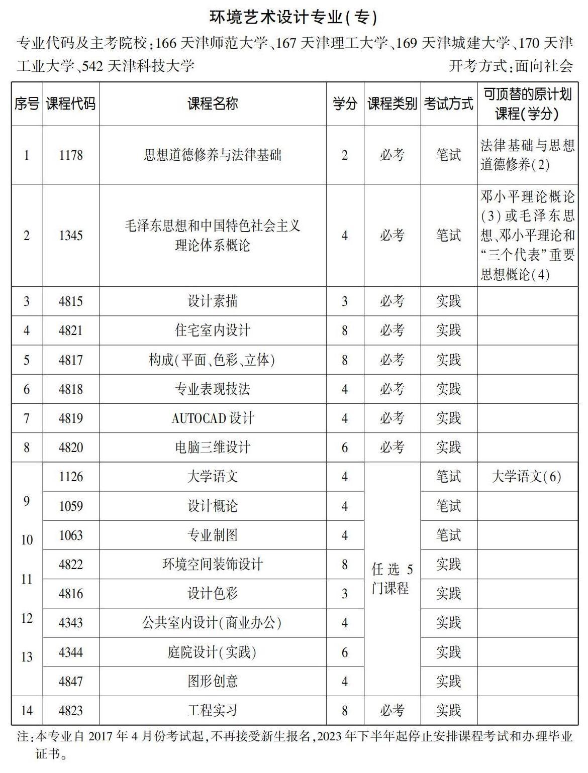 2022年10月天津自考??骗h(huán)境藝術(shù)設(shè)計專業(yè)計劃(??歼^渡)