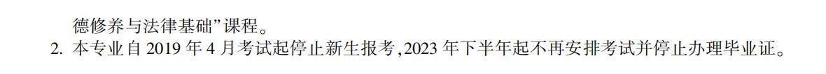 注:該專業(yè)停止安排考試和停止辦理畢業(yè)證的時間均延期至2023年6月30日。