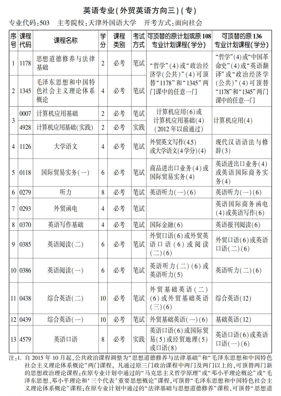2022年10月天津自考專科英語(外貿(mào)英語方向三)專業(yè)計劃(停考過渡)