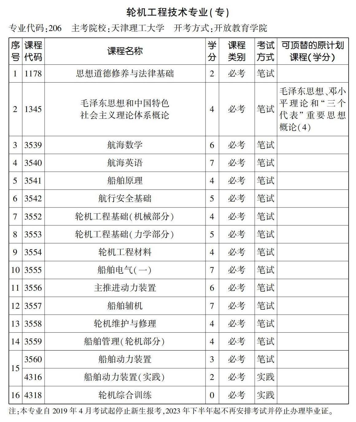 2022年10月天津自考專(zhuān)科輪機(jī)工程技術(shù)專(zhuān)業(yè)計(jì)劃(停考過(guò)渡)
