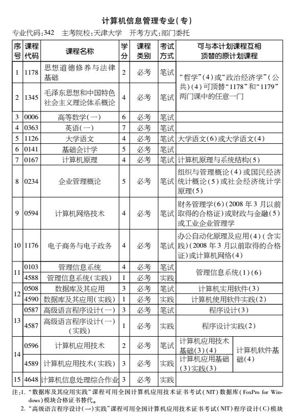 2016年天津自考計算機信息管理專業(yè)(專科)考試計劃