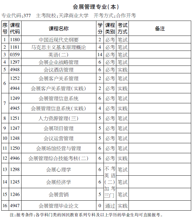 2016年天津自考會(huì)展管理(本科)考試計(jì)劃