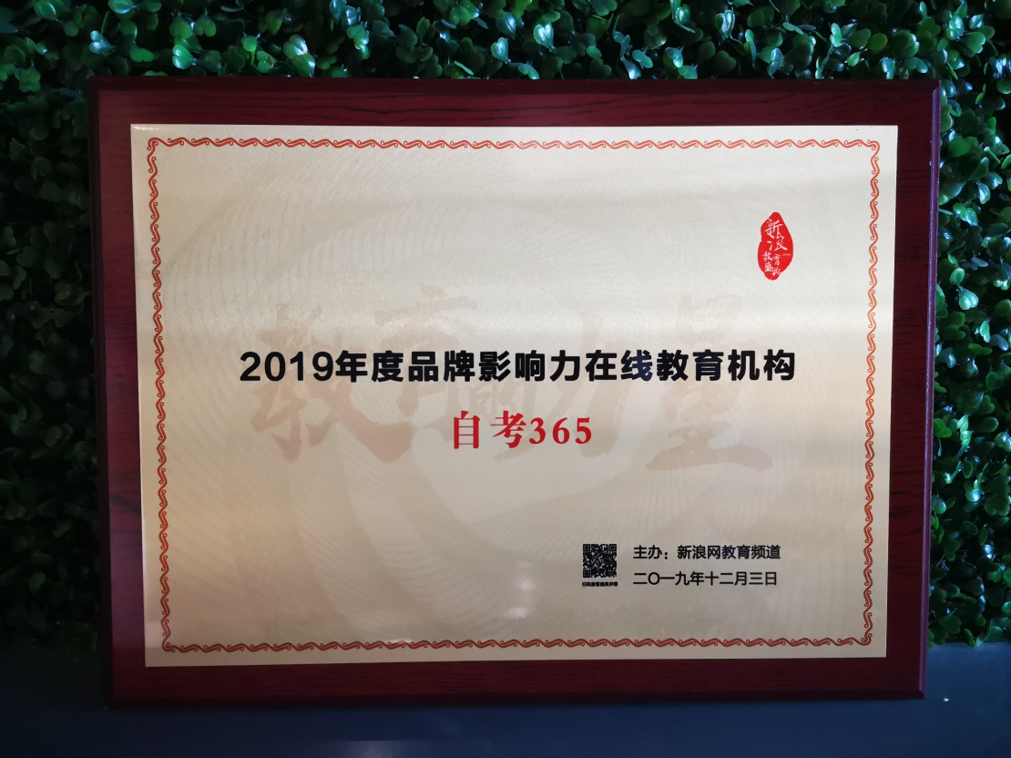 - 正保自考365獲得“2019年度品牌影響力在線教育機(jī)構(gòu)”稱號(hào)