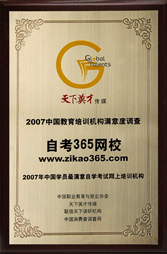 由天下英才傳媒、中國職業(yè)教育與就業(yè)協(xié)會、聯(lián)信天下調研機構與中國消費者調查網主辦的國內首個面向全國十多萬家大專院校和培訓機構開展的學員滿意度調查結果于2007年12月揭曉,“自考365網校(m.nbakt.cn)”榮獲“2007年學員滿意培訓機構”稱號。 |