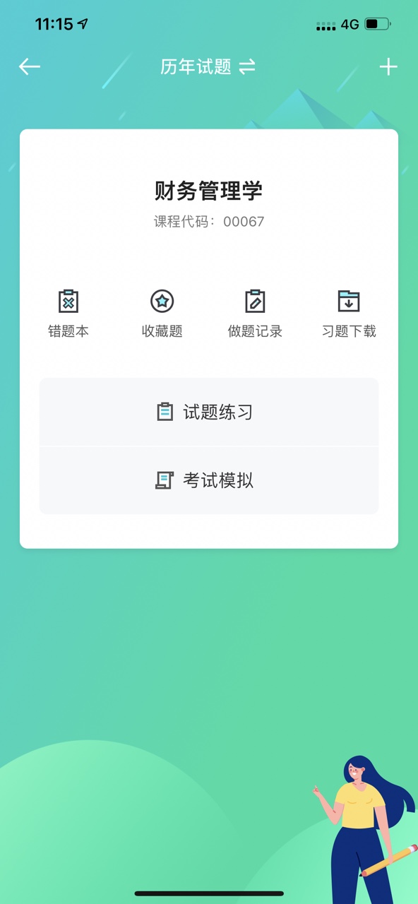 同時(shí),我們還可以在歷年試題科目中,查看自己做錯(cuò)的題和收藏的重要試題,點(diǎn)擊“考試模擬”按鈕,還可以直接開始做模擬試題。