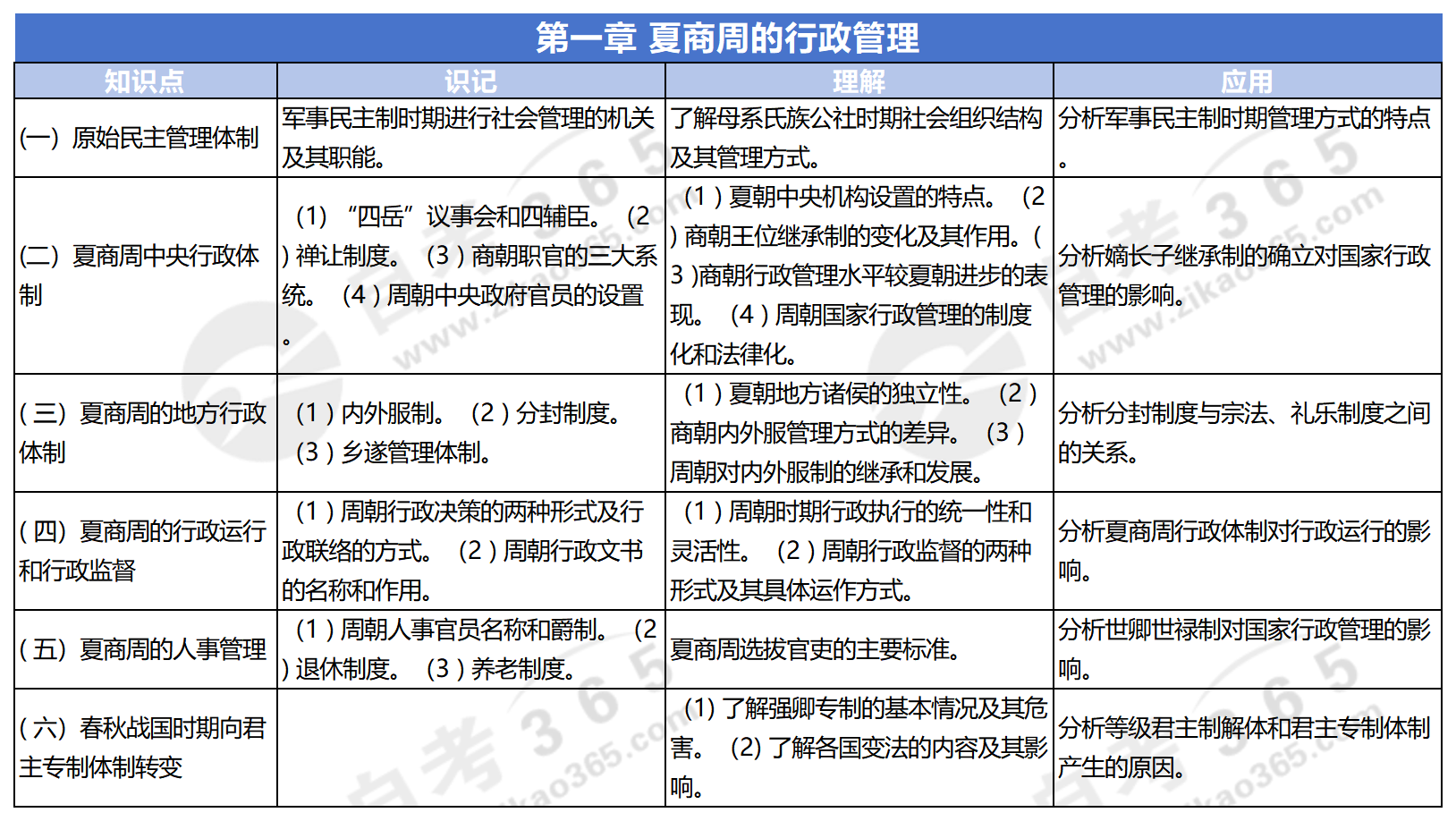自考中國行政史這一科,教材各章節(jié)考點(diǎn)都要好好掌握。中國行政史教材第一章-夏商周的行政管理部分,考生應(yīng)著重學(xué)習(xí)以下知識點(diǎn),并按理解應(yīng)用要求,把握好學(xué)習(xí)程度,這樣就能更有重點(diǎn)地學(xué)習(xí),更省心省力。
