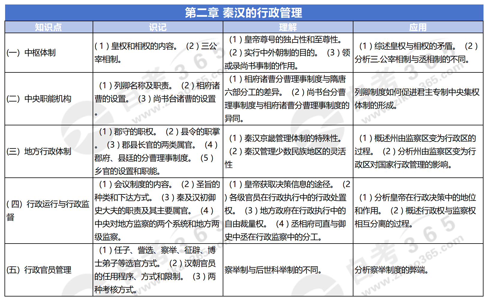 自考中國(guó)行政史這一科,教材各章節(jié)考點(diǎn)都要好好掌握。中國(guó)行政史教材第二章-秦漢的行政管理部分,考生應(yīng)著重學(xué)習(xí)以下知識(shí)點(diǎn),并按理解應(yīng)用要求,把握好學(xué)習(xí)程度,這樣就能更有重點(diǎn)地學(xué)習(xí),更省心省力。