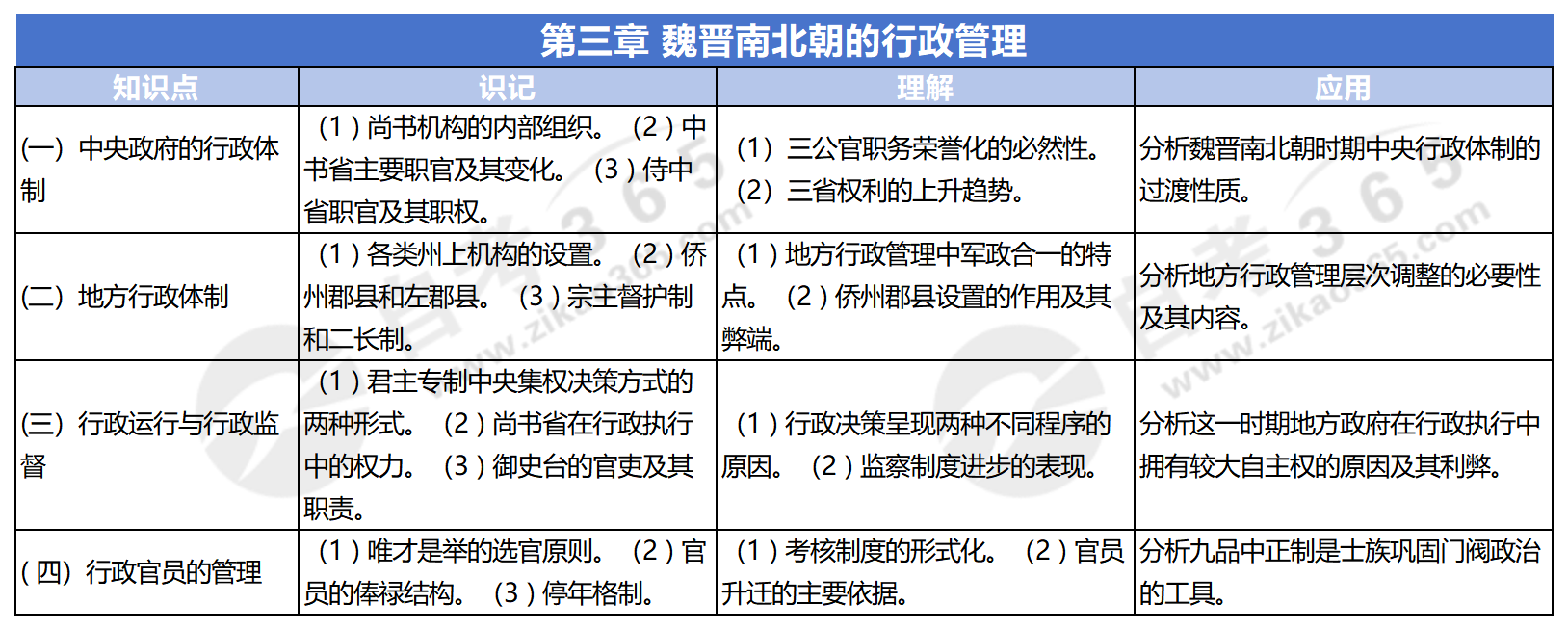自考中國(guó)行政史這一科,教材各章節(jié)考點(diǎn)都要好好掌握。中國(guó)行政史教材第三章-魏晉南北朝的行政管理部分,考生應(yīng)著重學(xué)習(xí)以下知識(shí)點(diǎn),并按理解應(yīng)用要求,把握好學(xué)習(xí)程度,這樣就能更有重點(diǎn)地學(xué)習(xí),更省心省力。