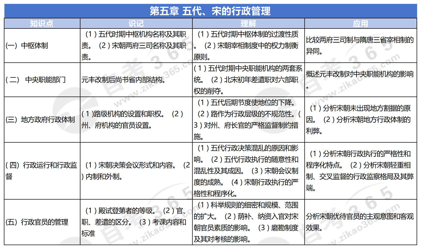 自考中國行政史這一科,教材各章節(jié)考點都要好好掌握。中國行政史教材第五章-五代、宋的行政管理,考生應著重學習以下知識點,并按理解應用要求,把握好學習程度,這樣就能更有重點地學習,更省心省力。