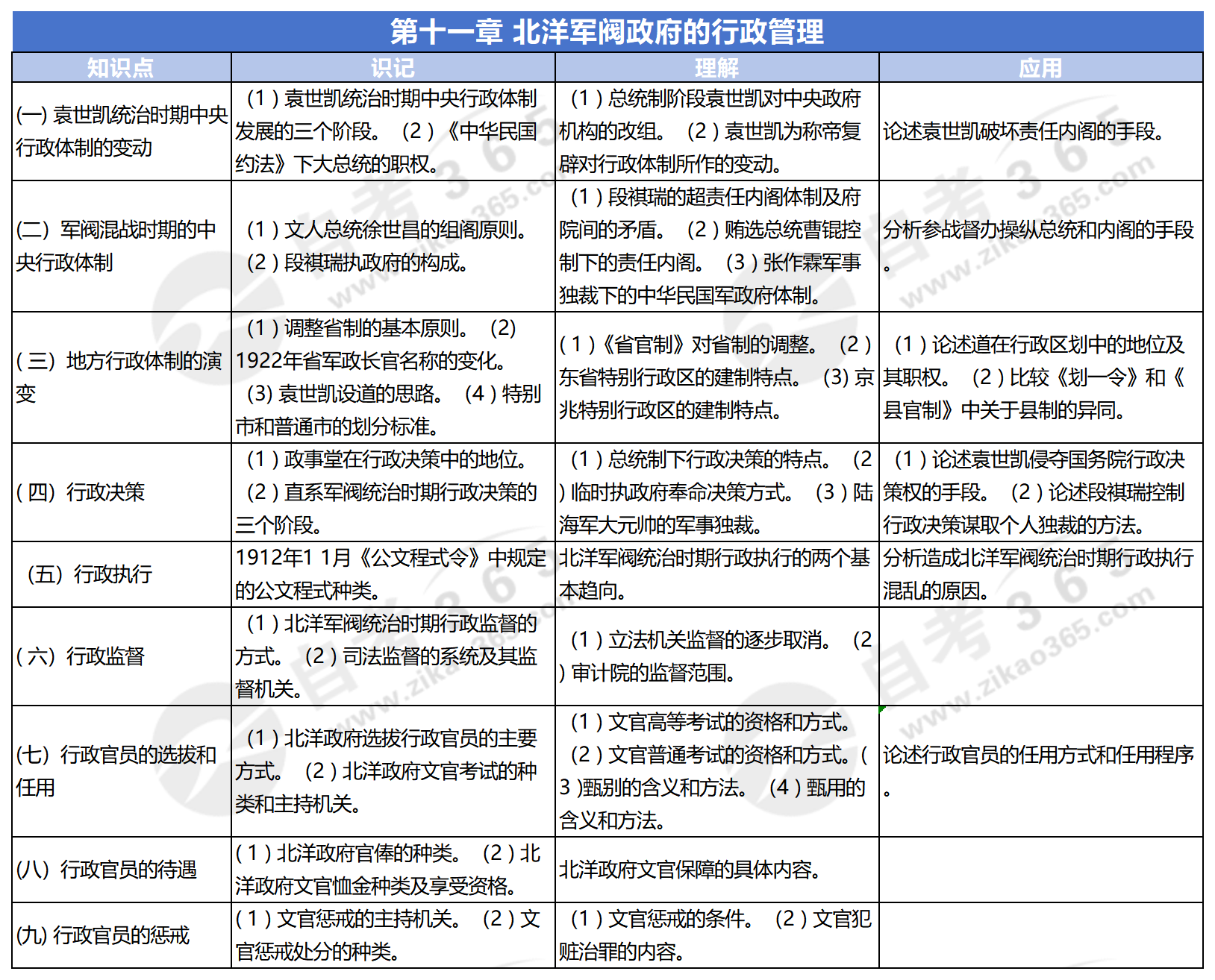 自考中國(guó)行政史這一科,教材各章節(jié)考點(diǎn)都要好好掌握。中國(guó)行政史教材第十一章-北洋軍閥政府的行政管理,考生應(yīng)著重學(xué)習(xí)以下知識(shí)點(diǎn),并按理解應(yīng)用要求,把握好學(xué)習(xí)程度,這樣就能更有重點(diǎn)地學(xué)習(xí),更省心省力。