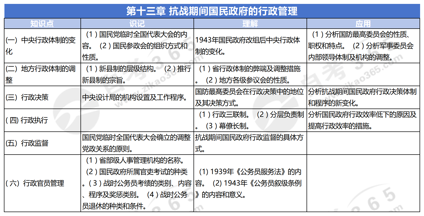 自考中國(guó)行政史這一科,教材各章節(jié)考點(diǎn)都要好好掌握。中國(guó)行政史教材第十三章-抗戰(zhàn)期間國(guó)民政府的行政管理,考生應(yīng)著重學(xué)習(xí)以下知識(shí)點(diǎn),并按理解應(yīng)用要求,把握好學(xué)習(xí)程度,這樣就能更有重點(diǎn)地學(xué)習(xí),更省心省力。