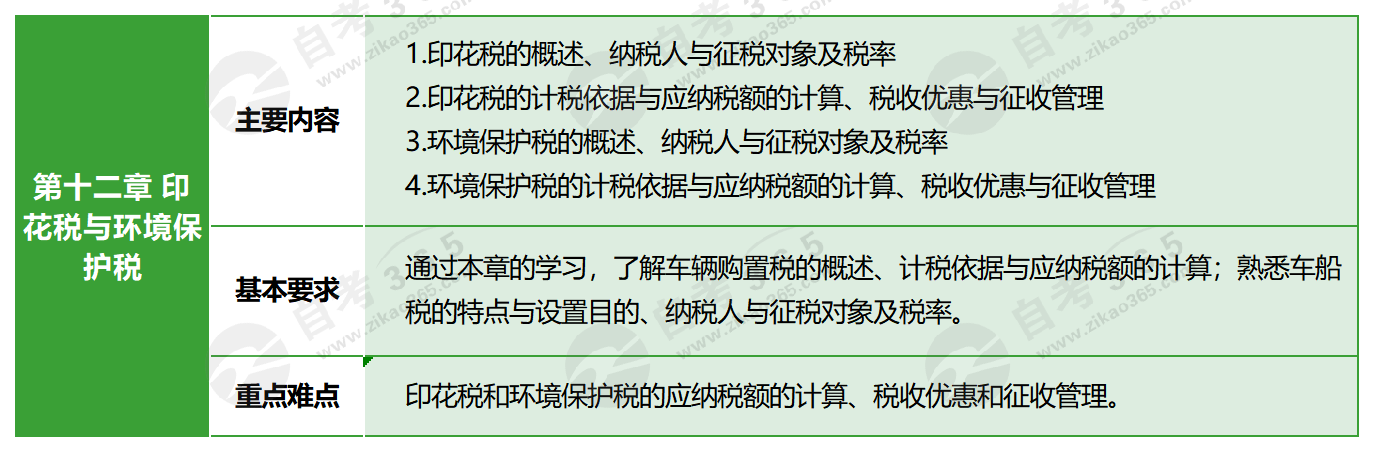 2024年自考中國稅制知識點(diǎn)框架:第十二章 印花稅與環(huán)境保護(hù)稅