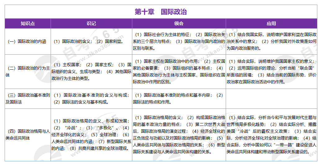 2024年自考政治學(xué)概論知識點框架:第十章 國際政治