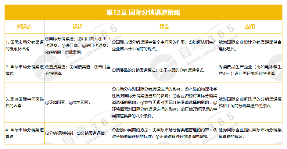 2024年自考國際市場營銷學(xué)知識(shí)點(diǎn)框架:第12章 國際分銷渠道策略
