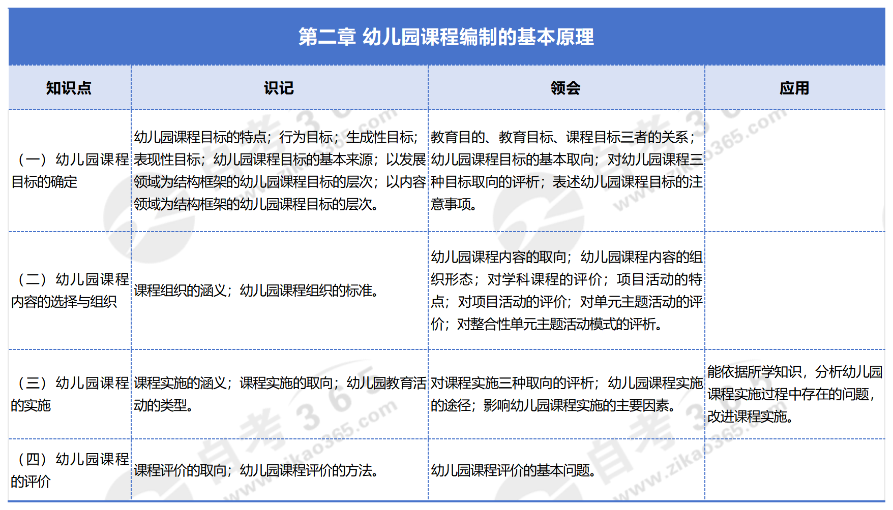 我們來看一下自考幼兒園課程與教學(xué)(2018版)章節(jié)知識點(diǎn)的學(xué)習(xí)要求吧!