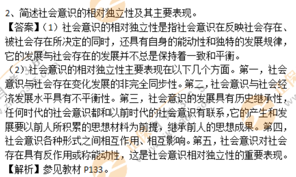 《思想道德修養(yǎng)與法律基礎(chǔ)》科目:“社會(huì)主義集體主義原則的基本內(nèi)涵”的相似題型在模擬試題(三)、高端班考前模擬試題(二)中都出現(xiàn)過;“簡(jiǎn)述全面依法治國的重大意義”、“民法的基本原則”、“論述社會(huì)主義法律本質(zhì)”3道題的相似題型在題庫練習(xí)中心出現(xiàn)過;“論述理想與現(xiàn)實(shí)的關(guān)系”的相似題型在題庫練習(xí)中心題目、高端班考前資料模擬試題(二)都有出現(xiàn);“論述職業(yè)生活中應(yīng)自覺遵守職業(yè)道德”的相似題型在模擬試題(三)中出現(xiàn)過。