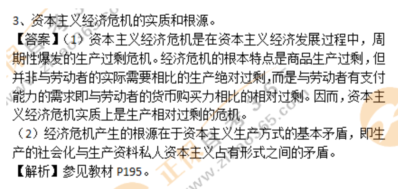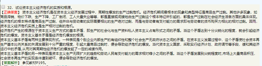 《馬克思主義基本原理概論》科目:“資本主義經(jīng)濟(jì)危機(jī)的實(shí)質(zhì)和根源”的相似題型在競(jìng)賽試題(二)中出現(xiàn)過;“如何認(rèn)識(shí)國家壟斷資本主義的實(shí)質(zhì)”、“簡(jiǎn)述共產(chǎn)主義遠(yuǎn)大理想和中國特色社會(huì)主義共同理想的關(guān)系”2道題的相似題型在題庫練習(xí)中心出現(xiàn)過。