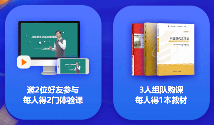 5月26日—6月18日,自考365推出“免費(fèi)體驗(yàn)課”,考生只需注冊(cè)/登錄自考365平臺(tái),進(jìn)入頁(yè)面,即可發(fā)起好友組隊(duì)。(點(diǎn)擊直達(dá)頁(yè)面>>)