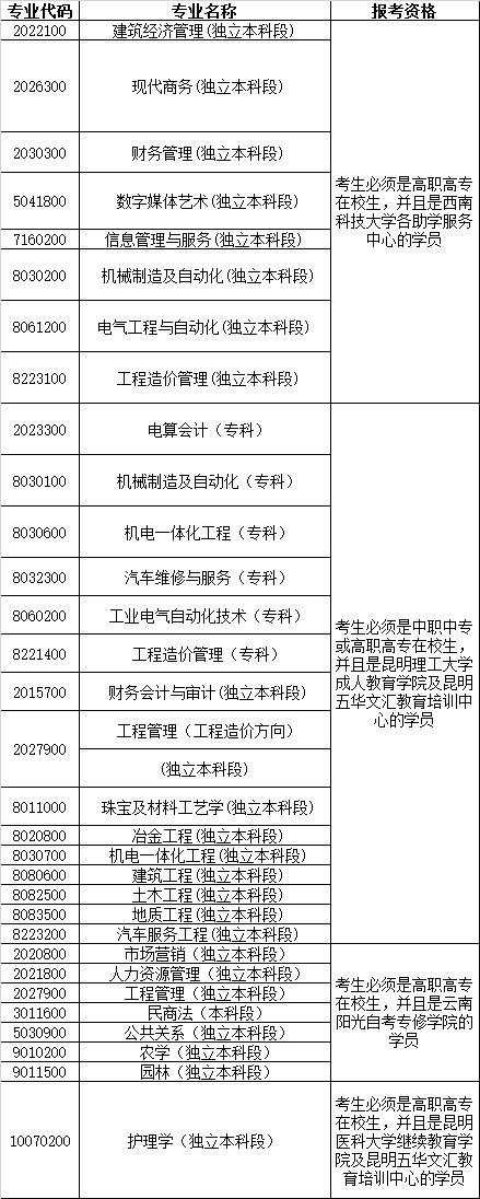 3、報考下列專業(yè)的考生,必須具備下列資格,否則不能取得畢業(yè)證書。