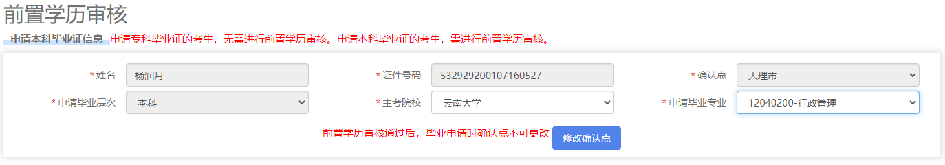 注:申請(qǐng)本科畢業(yè)證的考生,需進(jìn)行前置學(xué)歷審核。