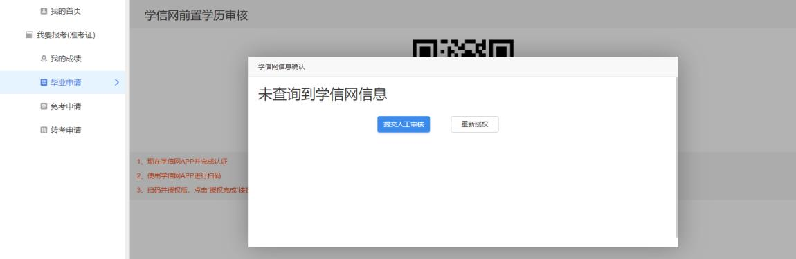 2.如未查詢(xún)到學(xué)歷信息,提交人工審核,進(jìn)入人工審核階段。